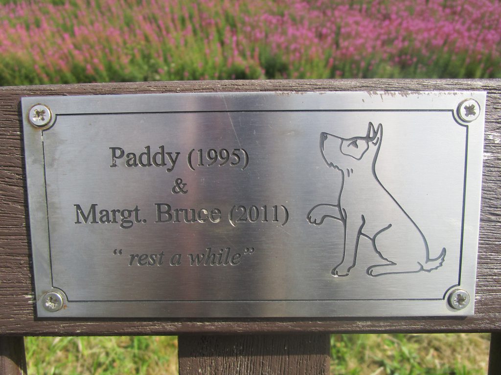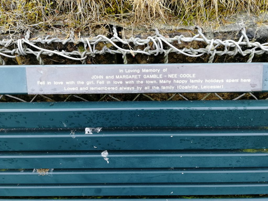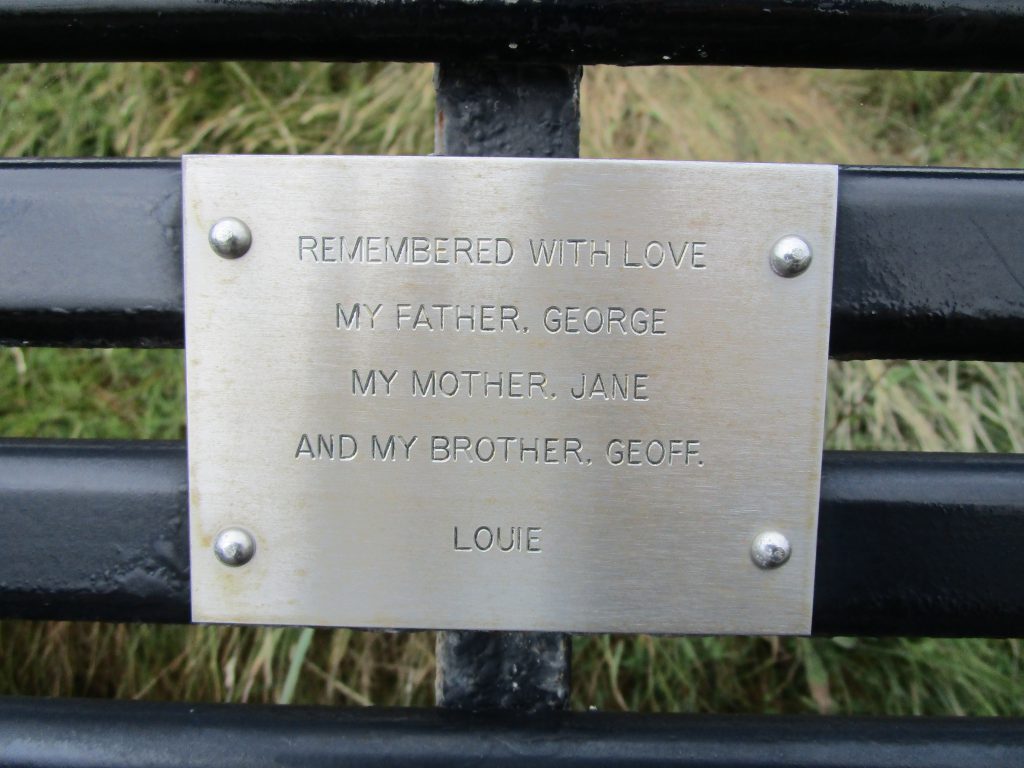 Danach bin ich nie wieder achtlos an so einer Plakette vorbei gegangen, egal wo sie angebracht war. Überall im öffentlichen Raum, konnte ich in GB solche Spuren von geliebten Menschen entdecken, die ich nicht kannte, aber die von ihren Angehörigen nicht vergessen waren. Es gehört zur britischen Trauerkultur einfach dazu, auf diesem Wege öffentlich an geliebte Menschen zu denken. Dabei heißt das nicht unbedingt, dass die ganze Bank gespendet ist: auch kommunale Parkbänke können zum Gedenkort für Trauer werden (natürlich muss der „local council“ sein Einverständnis geben). Manchmal wird auch eine ganze Bank gespendet, vielleicht am Lieblingsort des Verstorbenen, wo er oder sie immer mit dem Hund Gassi gegangen ist?! Inzwischen weiß ich diese britische Tradition sehr zu schätzen und wünschte mir, so etwas gäbe es in Deutschland auch!!