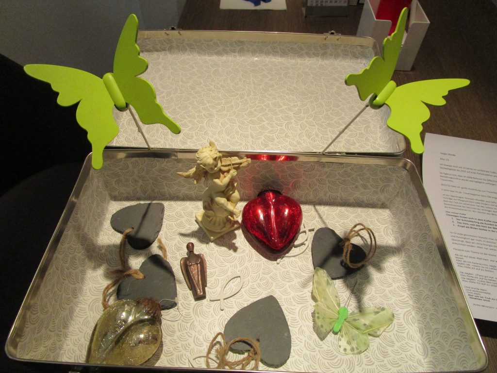 Oder eben unbändige Fülle: ein Kuscheltier, eine Flasche Perfum, 3 Cd’s, ein Buch, eine Flasche Whisky, etwas zu Naschen, Fotos……alles in einem Koffer!